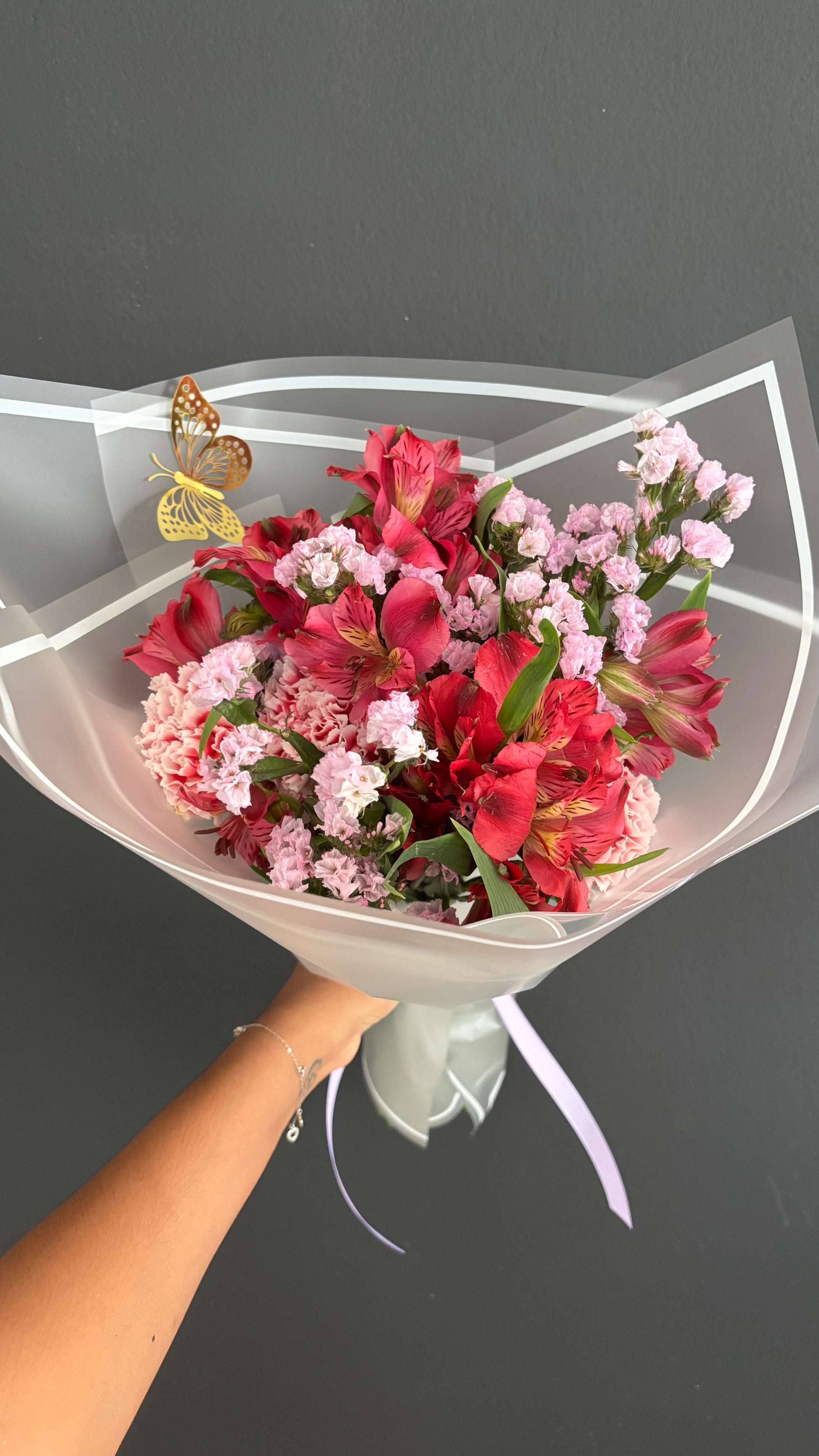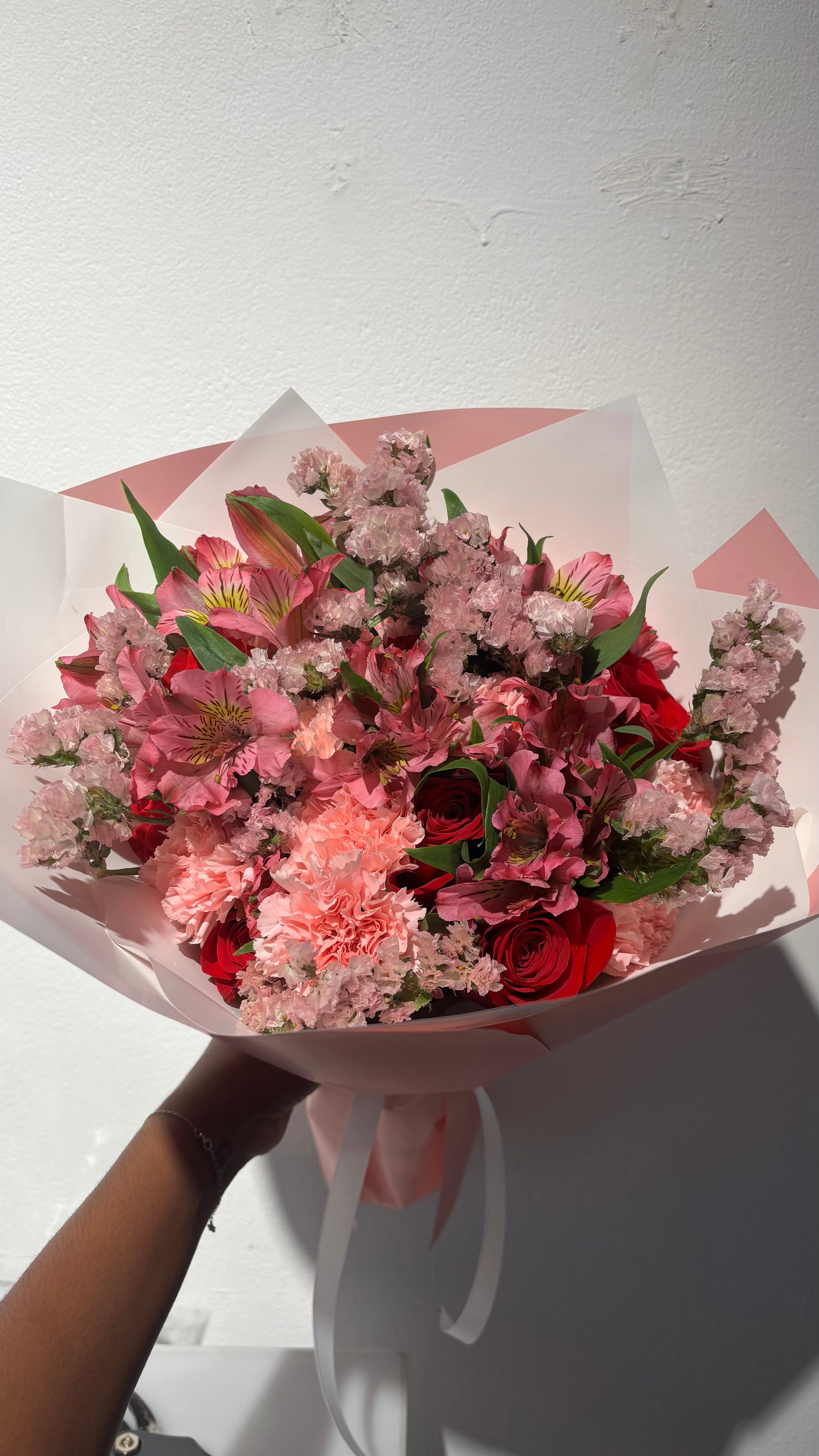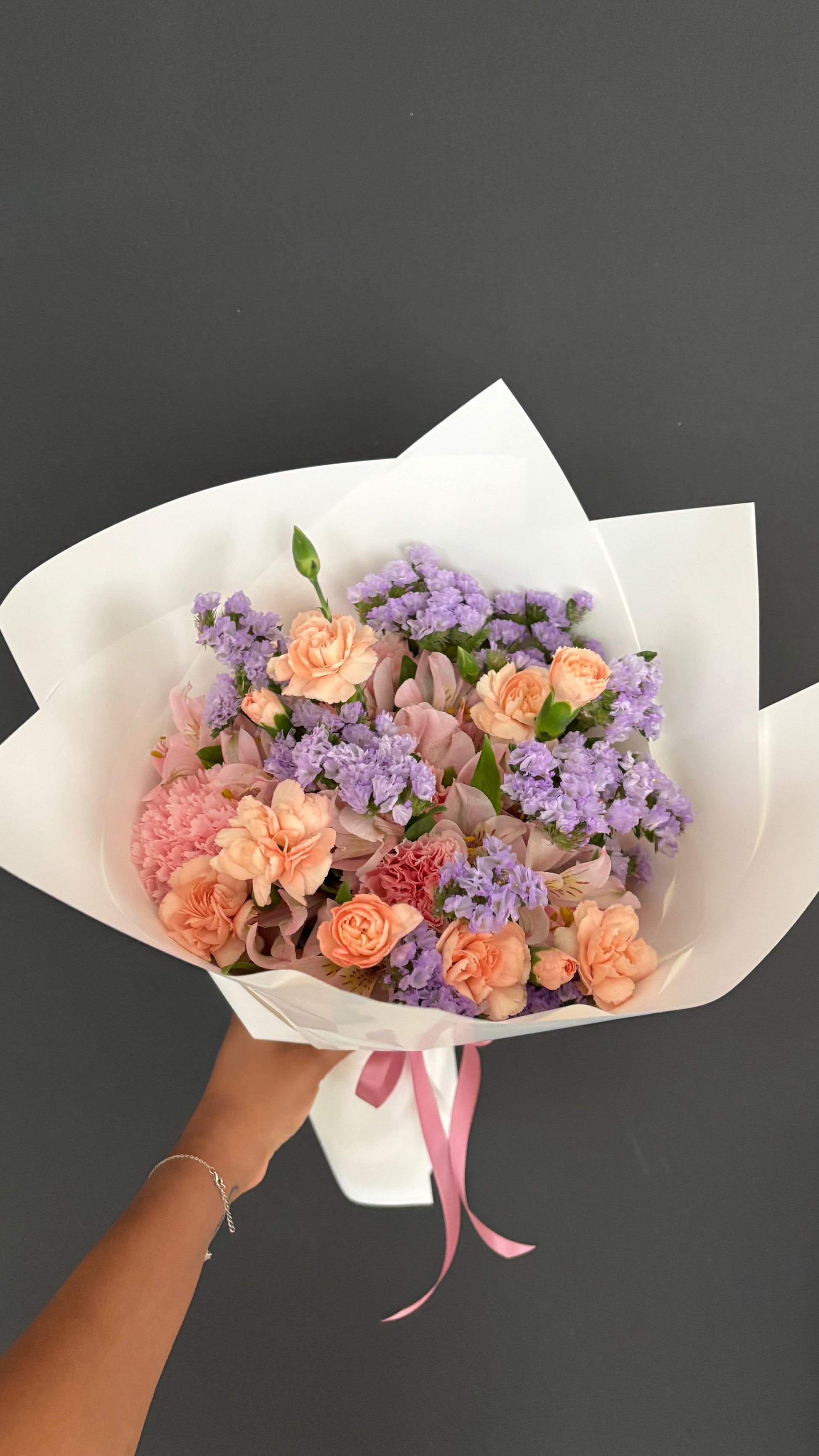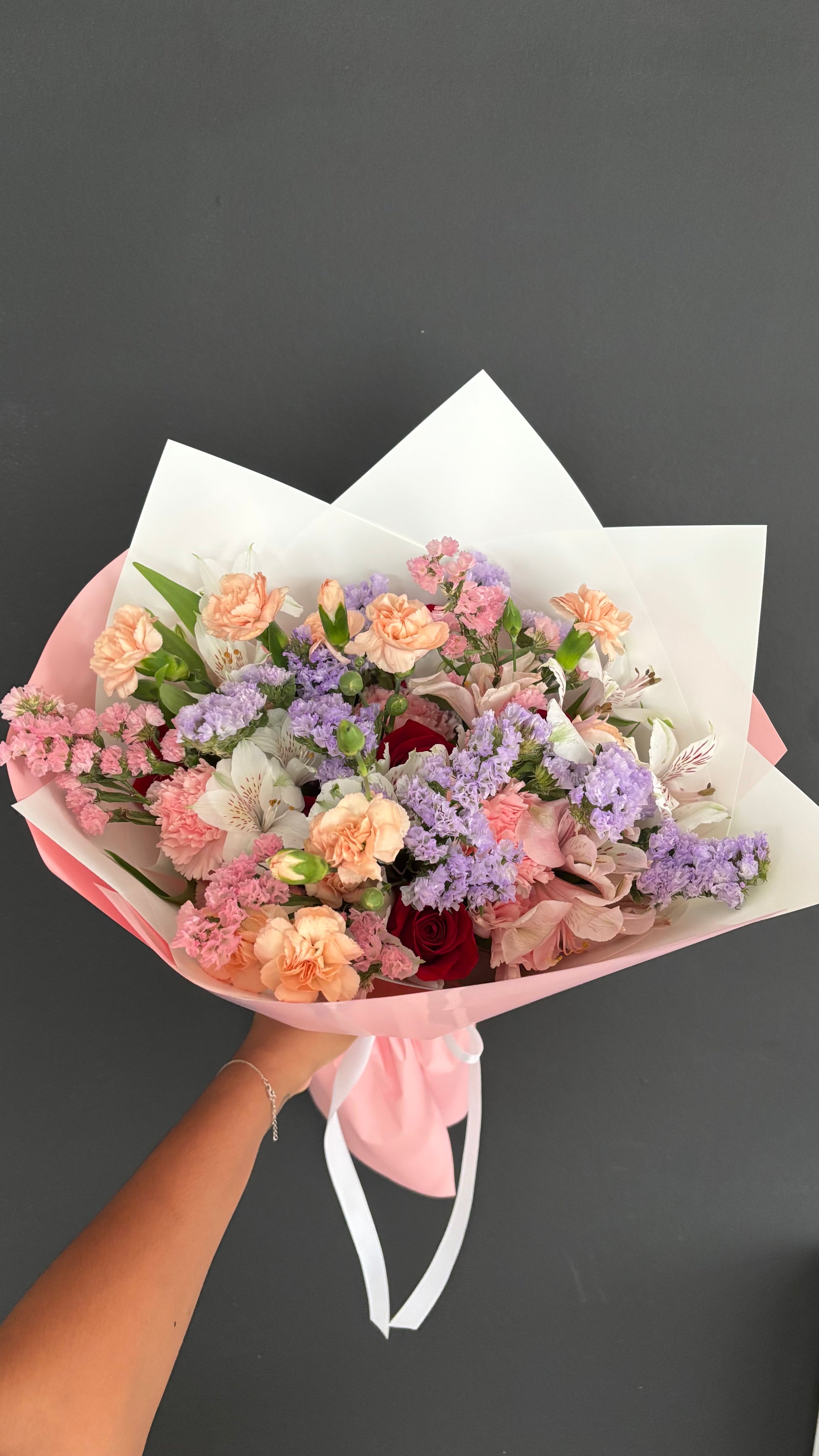 - Surtido de flores, cada arreglo es único surtido entre (rosa, Statice, clavel, astromelia)
