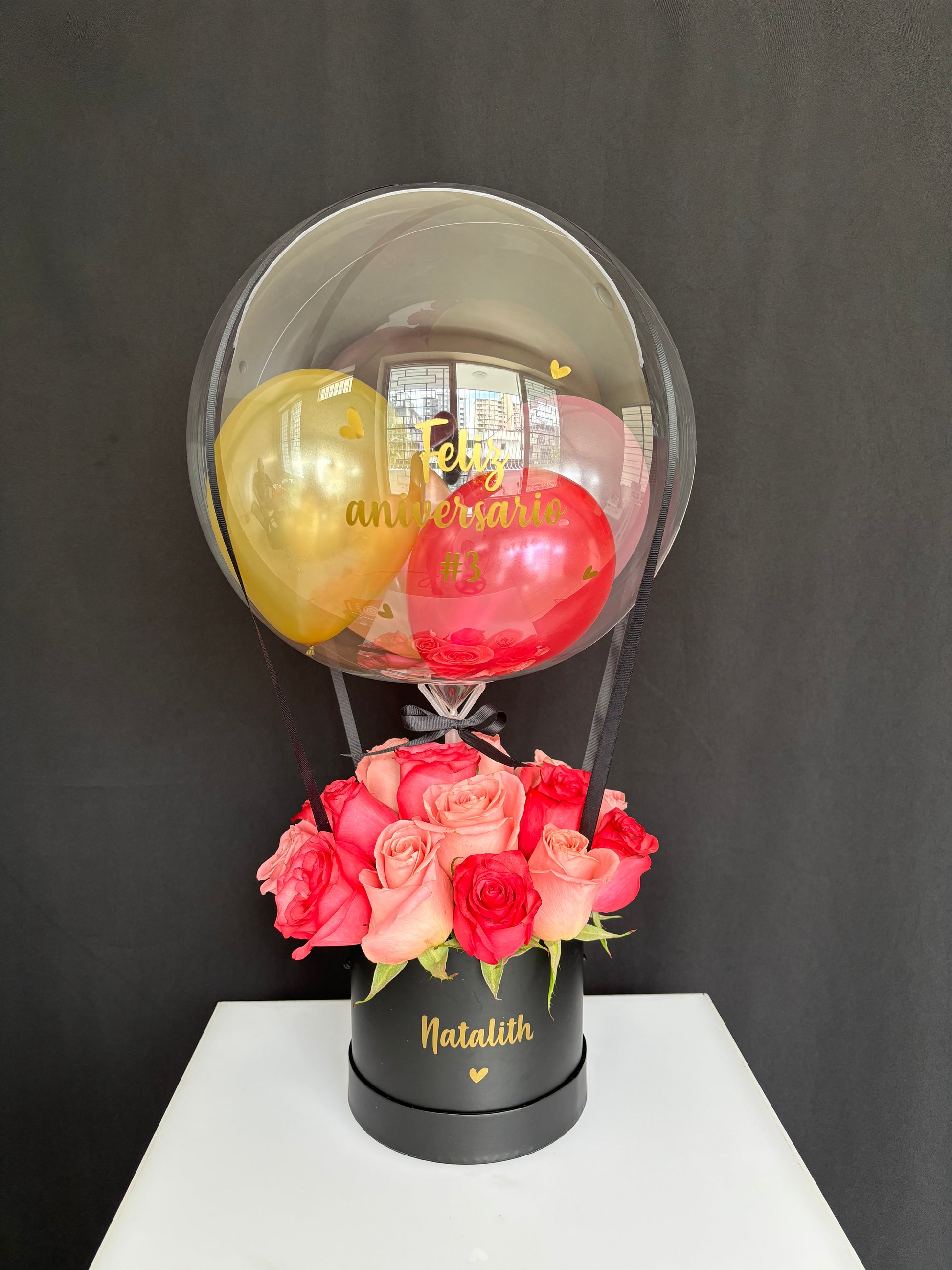 Altura del globo desde 16cm x 14cm depende del tamaño del arreglo se usar un tamaño adecuado del globo.
