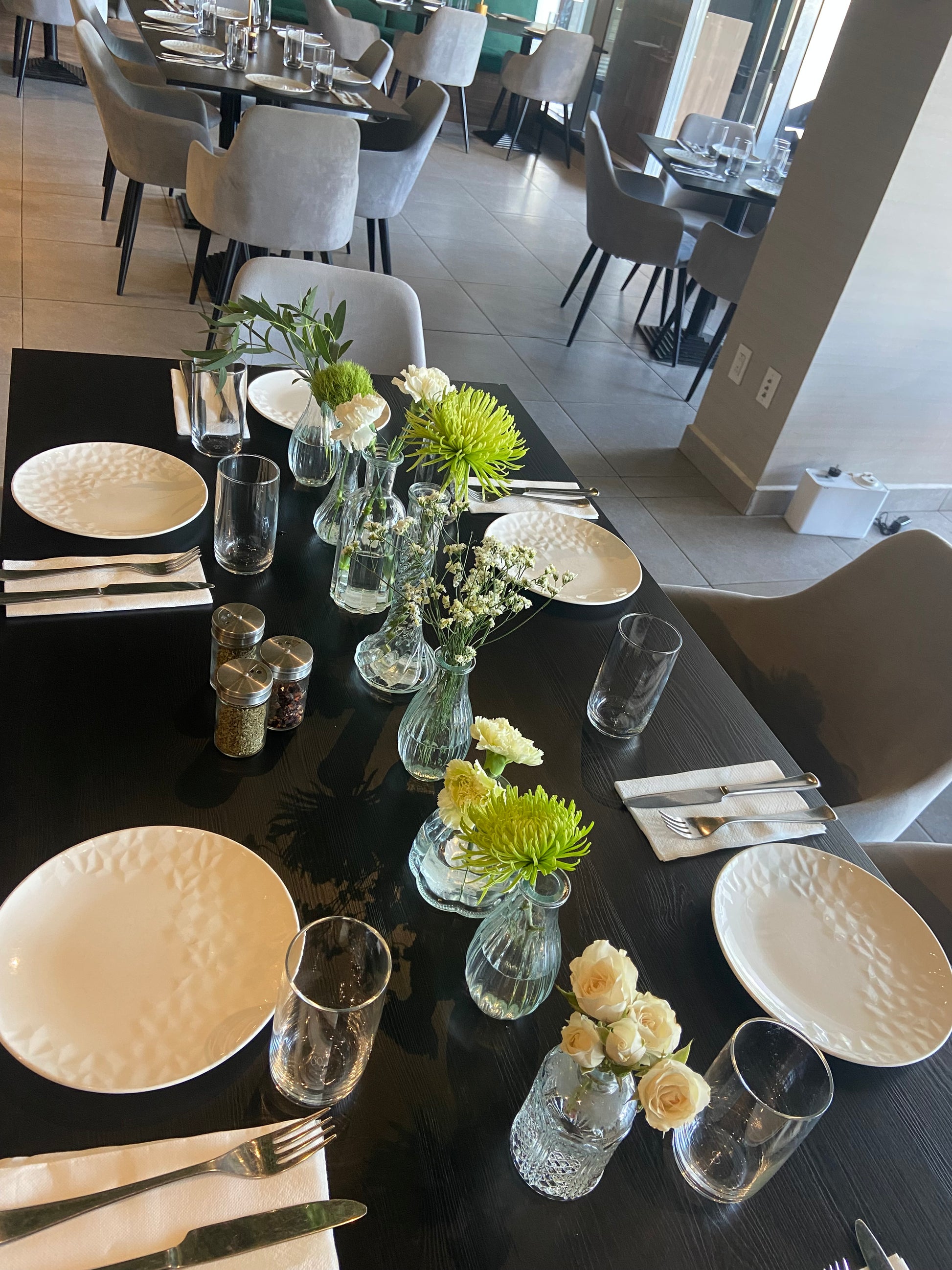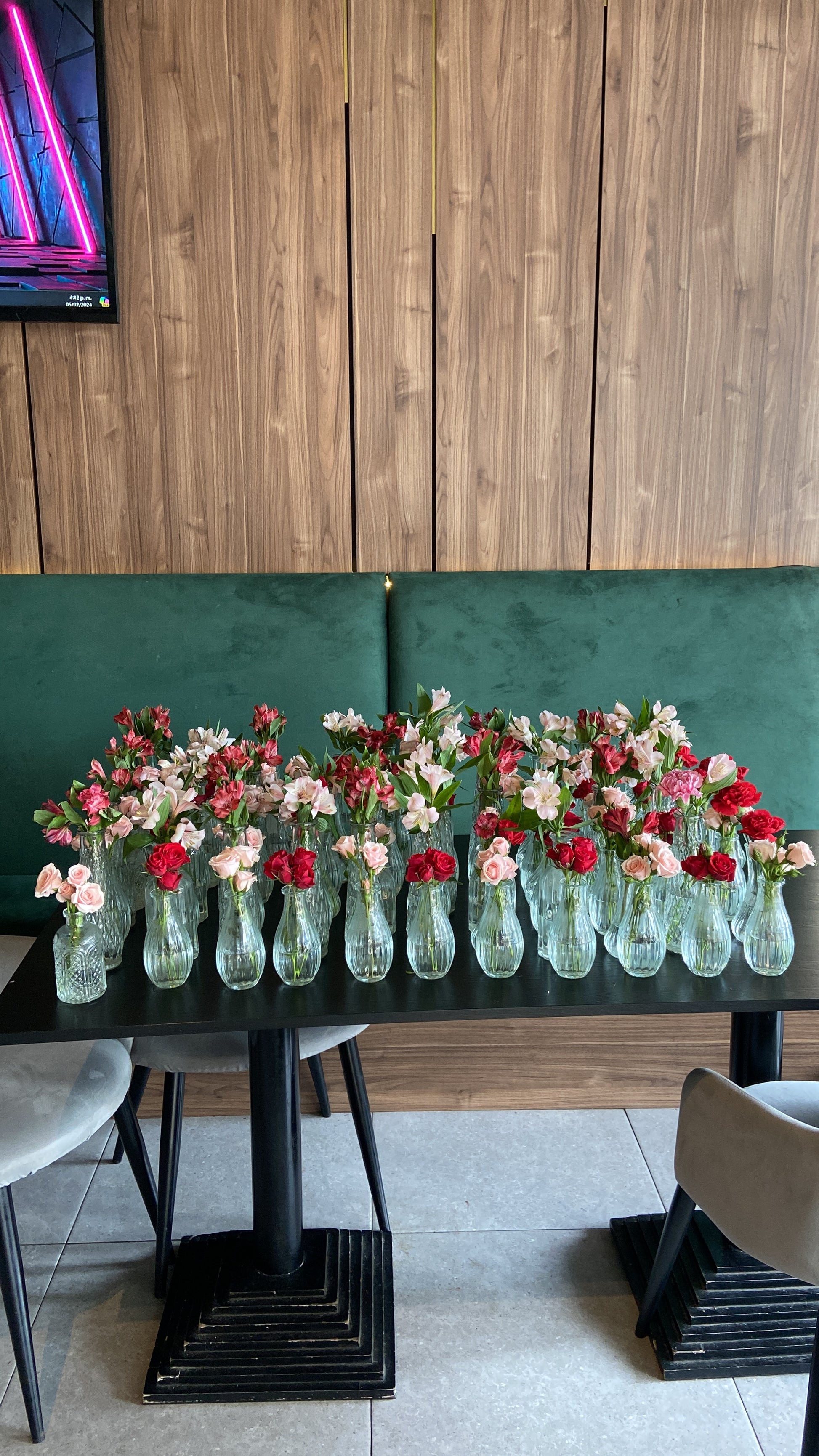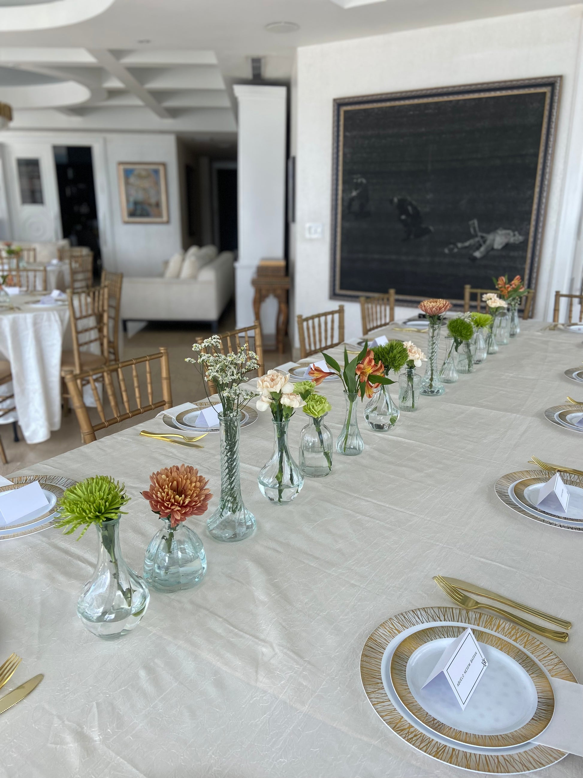 Arreglo para mesa de 20 puestos es una composición de 23 unidades floreros.