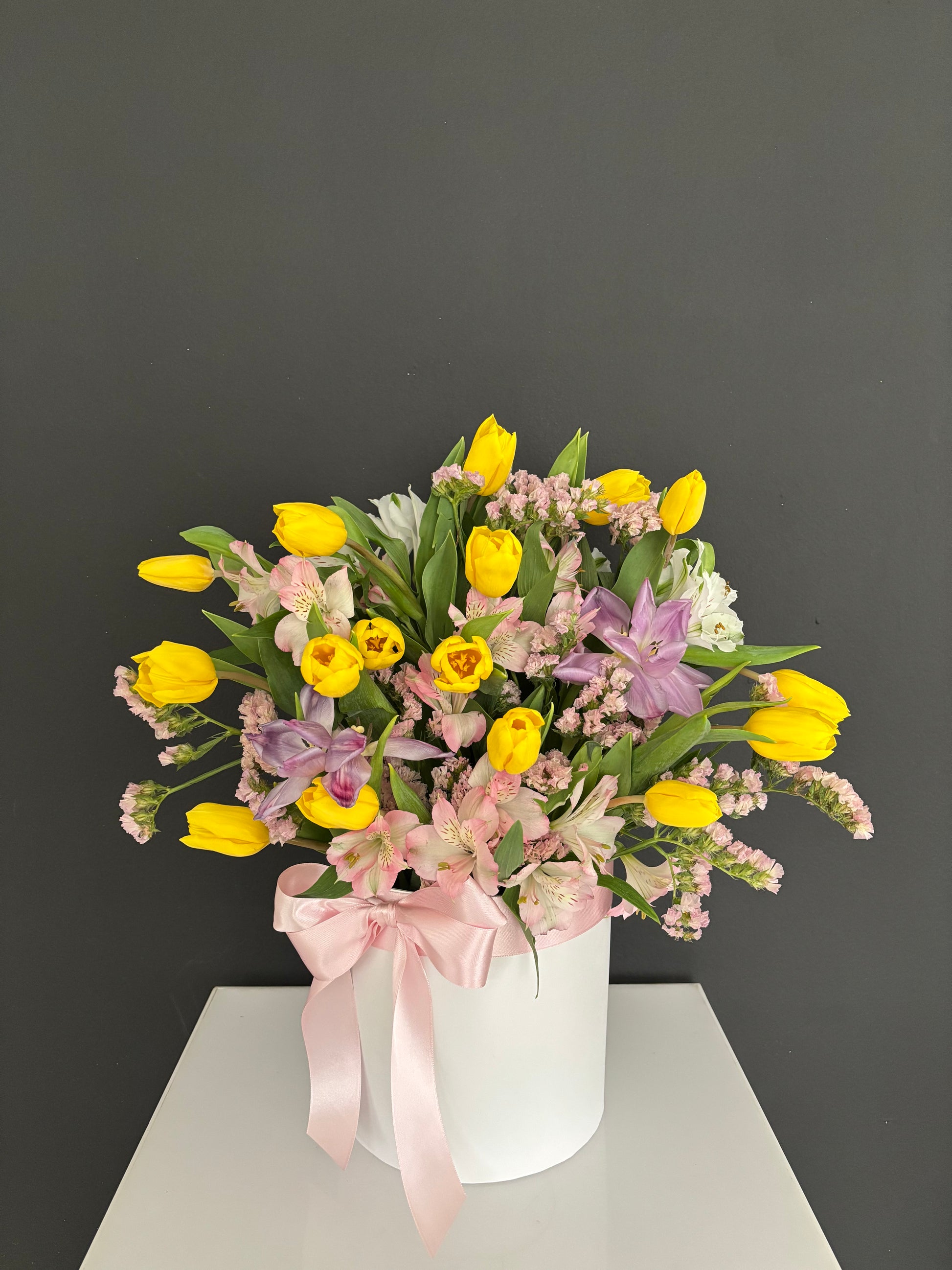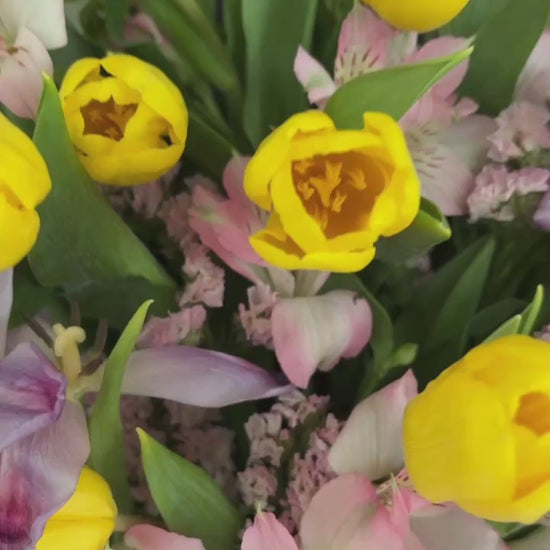 Este arreglo se usara un surtido de flor el cual llevara (Rosa, tulipán, Astromelia, Gypsophilia, Clavel, Crisantemos).