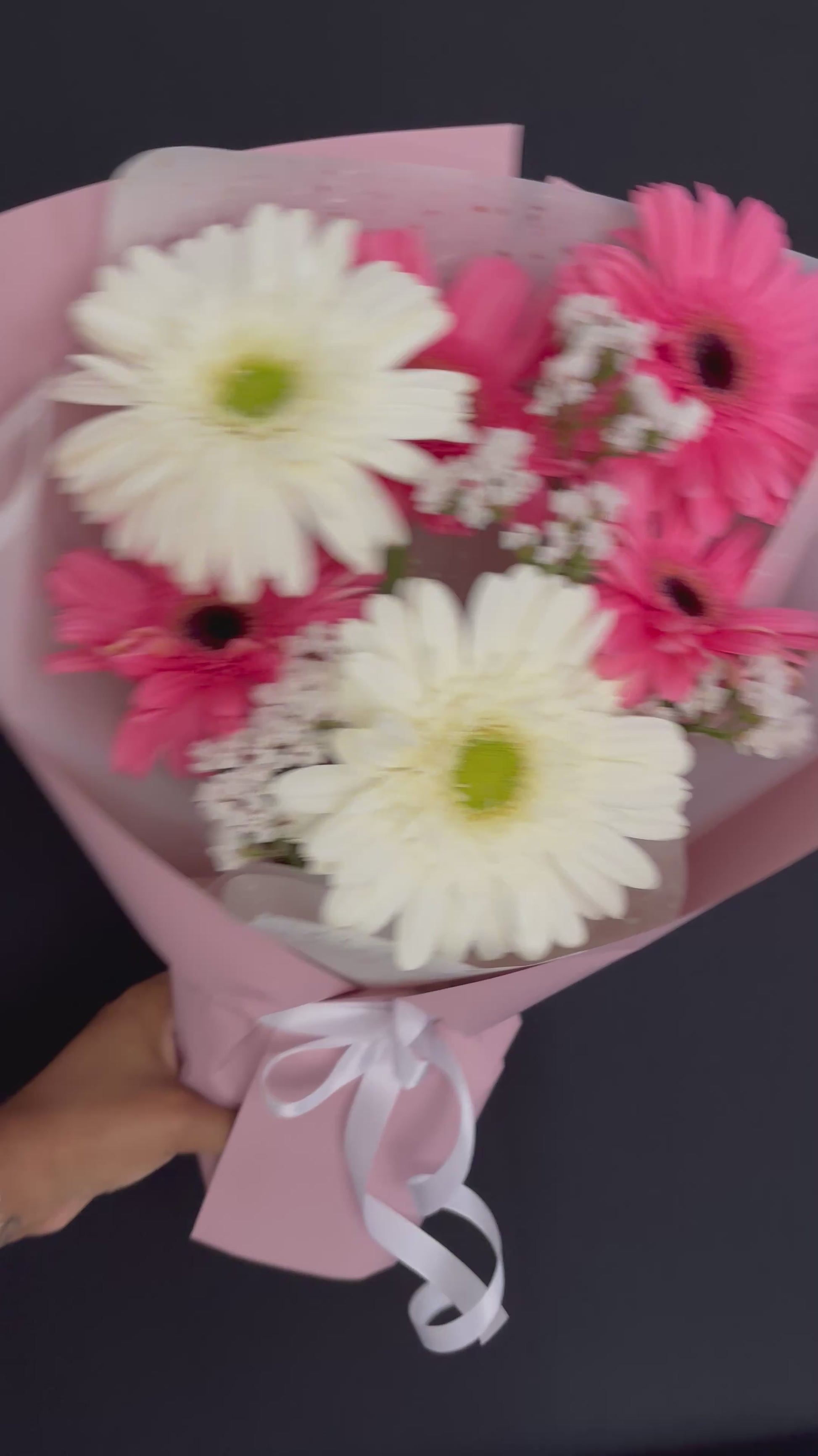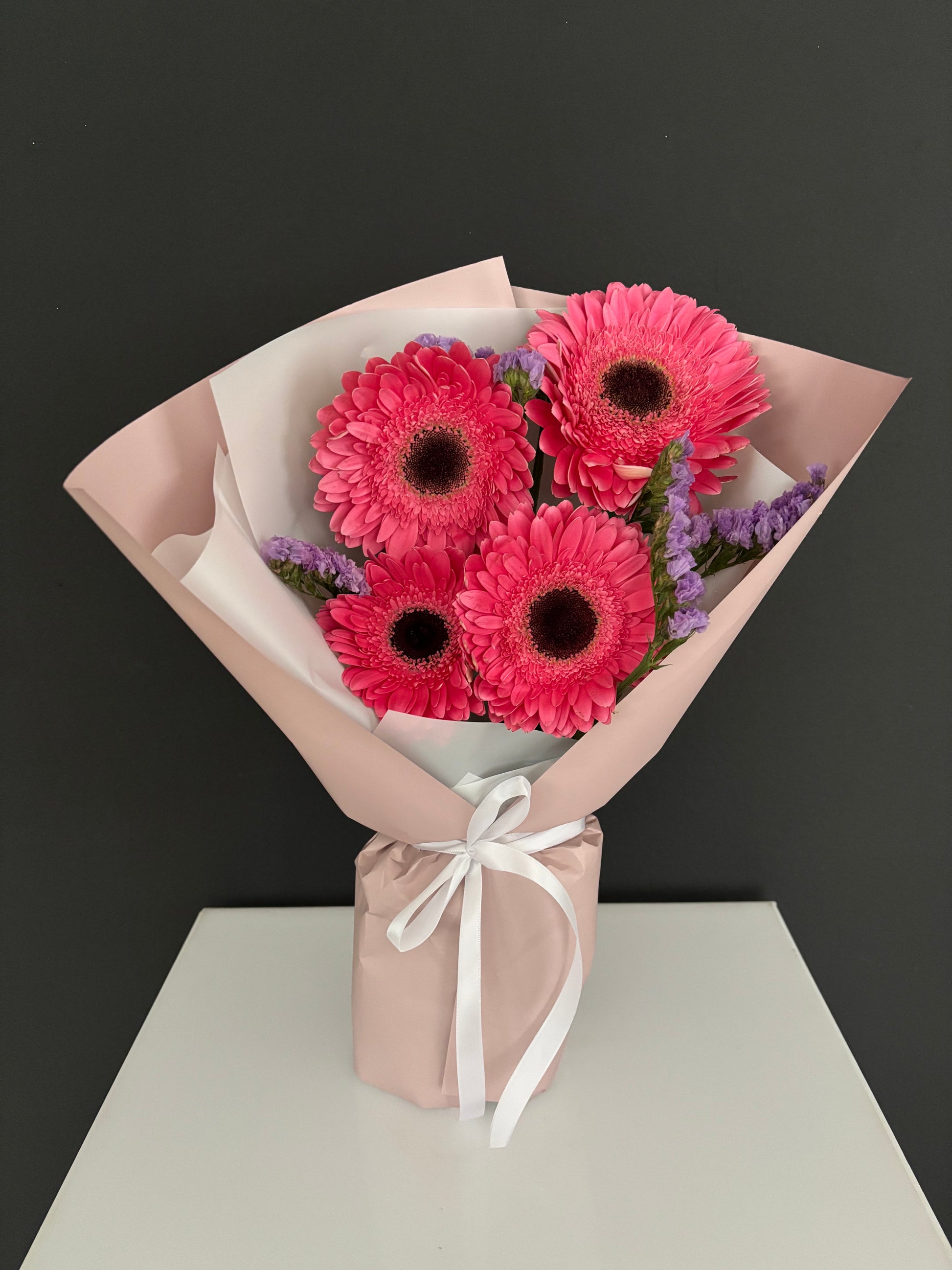 - Small 4 gerberas con gypsophilia (1 tono)MEDIDAS ⬆️27cm x ↔️14cm.