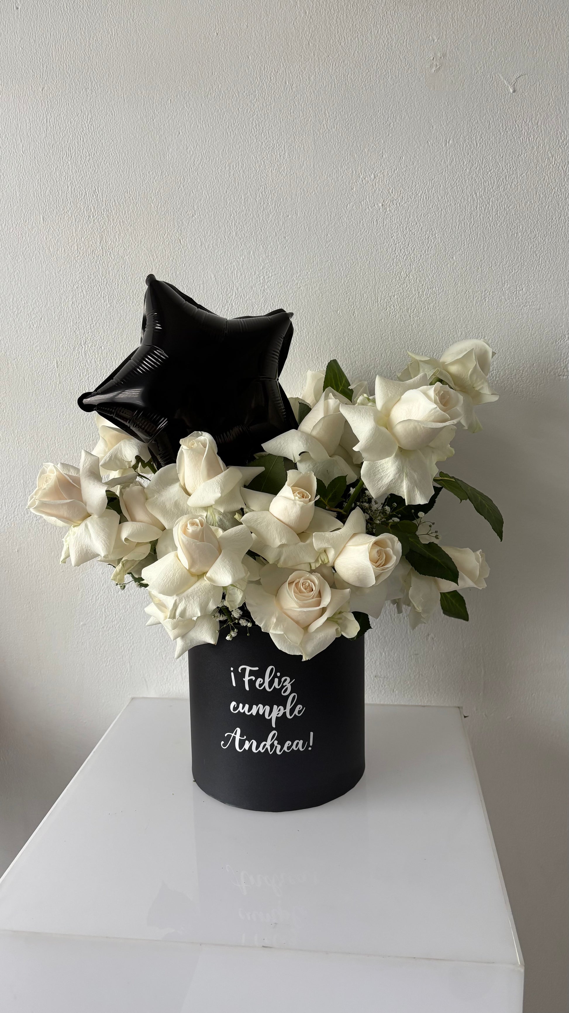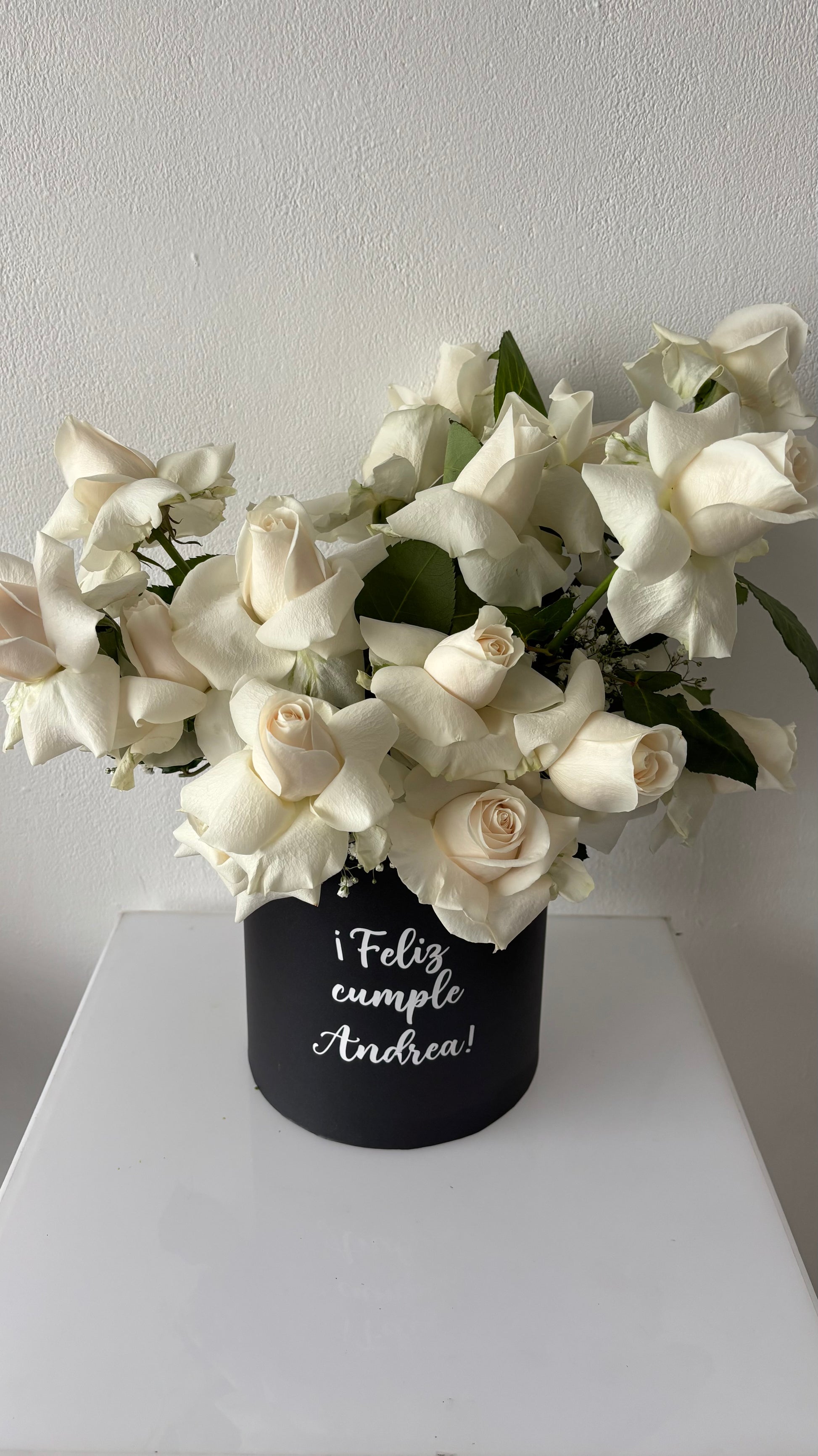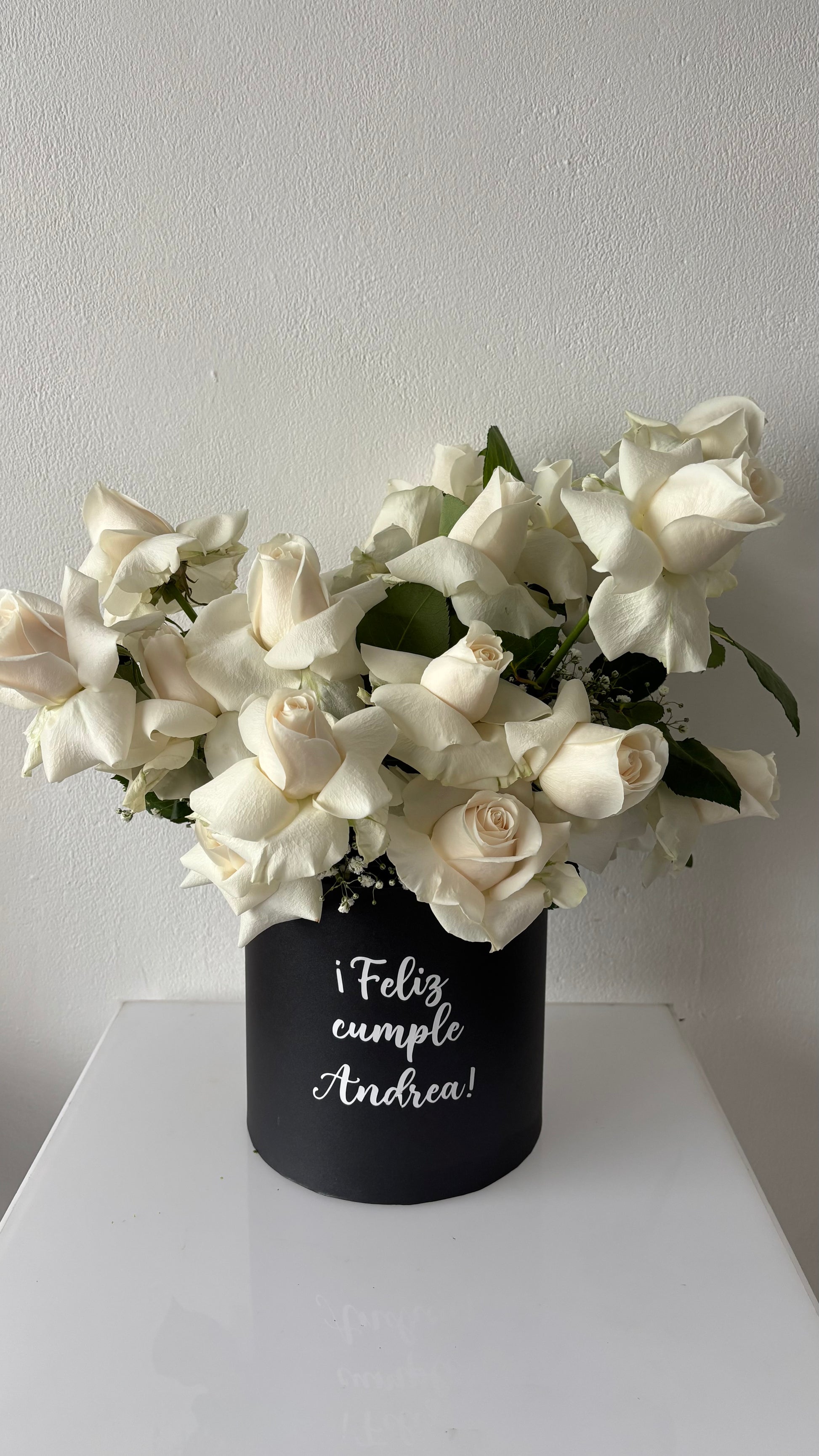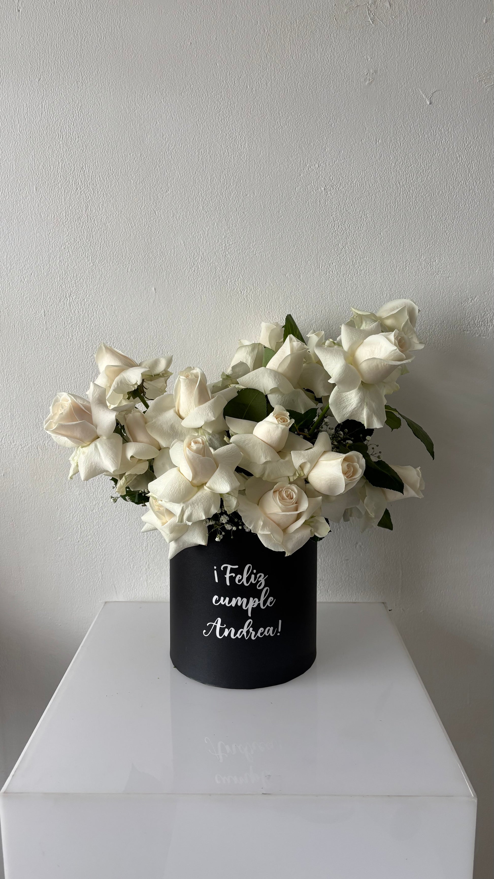 Hermoso arreglo con rosas y base personalizada